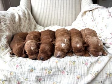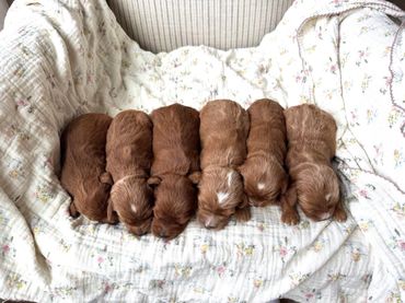 Meet Grace's Cavapoo litter! She had 3 girls & 3 boys, born May 15th.