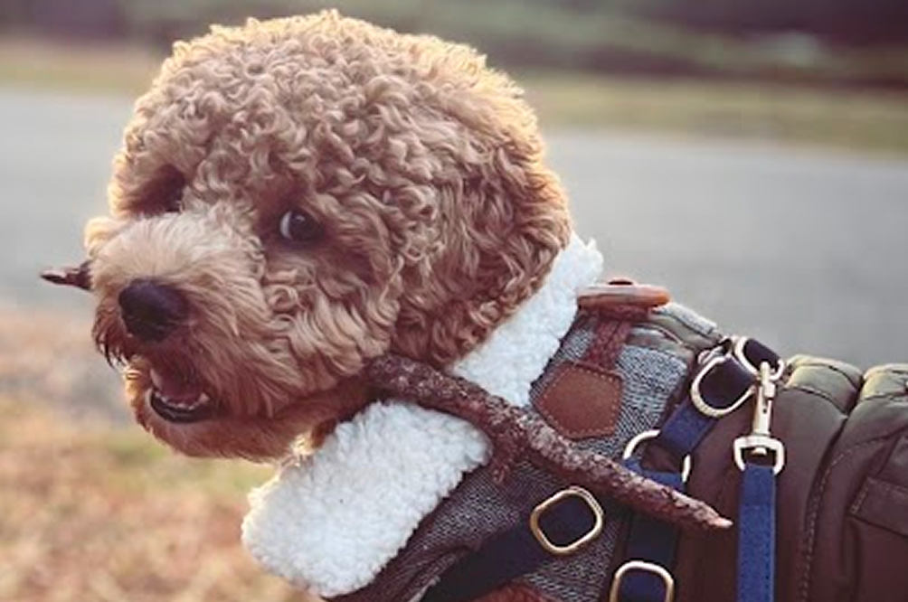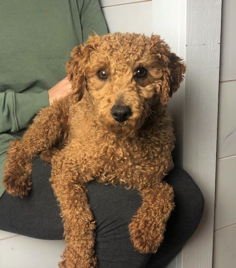 Bruno weighs 15lbs and has a brown curly coat!