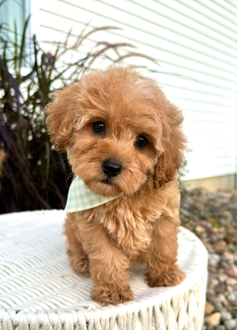Kate (Cavachon, 12 lbs, golden cream coat) × Louie (Toy Poodle, 13 lbs)