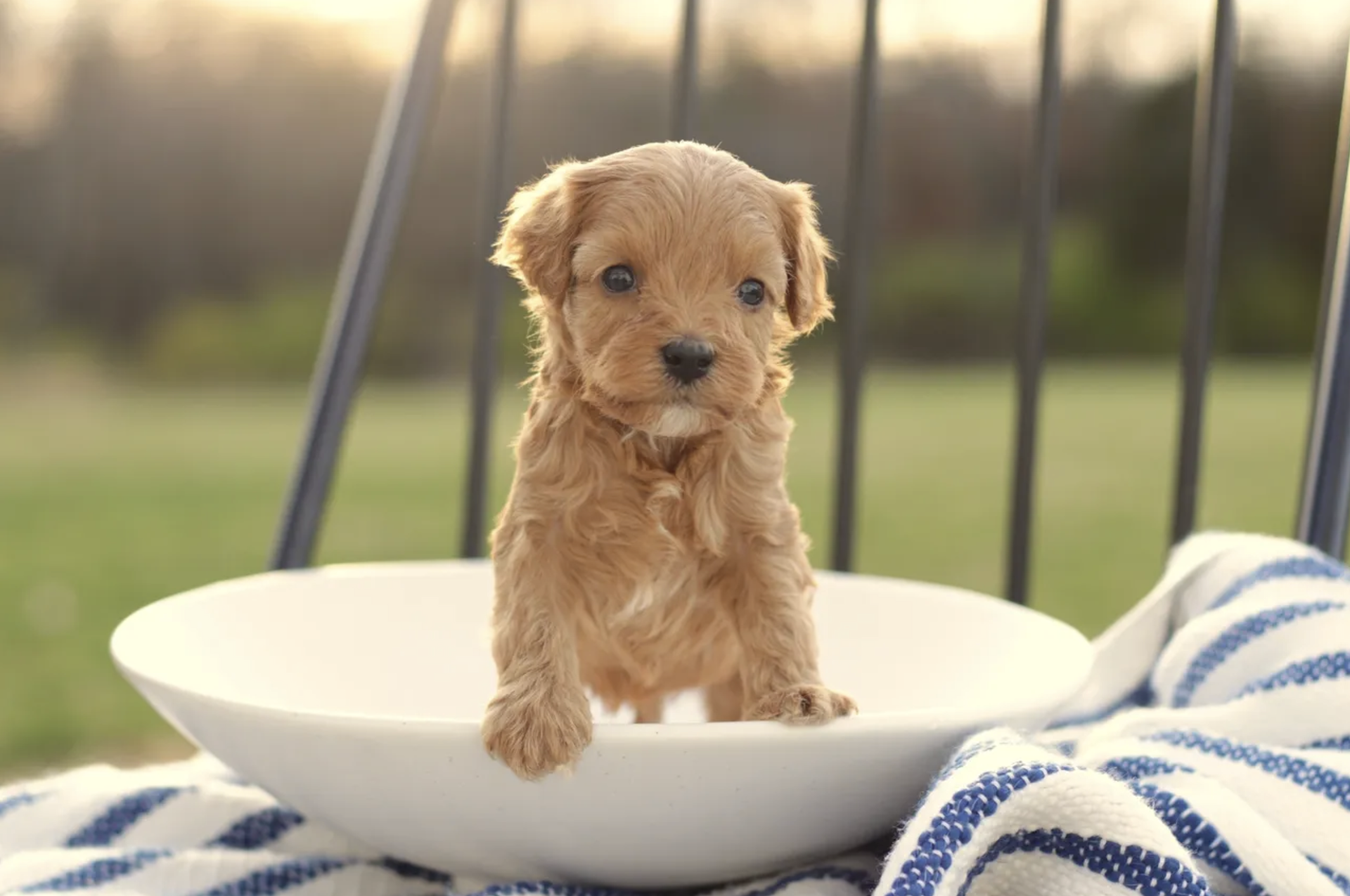We often joke that bringing home a new puppy is like bringing home a baby...although we say it in jest, there are several major similarities! Nothing to be scared of, but some realities that we believe it is good to be prepared for. Let me break it down for you, What To Expect with a new Cavapoochon Puppy All puppies react differently to the first day in their new home, but for the most part they are all fairly similar. We try our best to prepare them for this transition with various different applications, but the reality is they are leaving all that they have ever known and are thrust into a new place with new smells, sounds, people, & other pets. As well as a huge travel day on top of that that often causes an upset belly and some nausea. Because of all this it is common to see some shaking, hiding, slobbering and/or nausea, whining, shyness etc. These should all go away within an hour up to the first night, depending on the dog and if it does not please reach out to us. We will send a blanket that was with your puppies siblings and mama so keep that close for some familiarity. If your puppy experienced a lot of nausea during their travel home we highly suggest making sure they get a meal and water before bed that night. We send a syringe of water and a high calorie supplement with every dog to ensure you can get something in them if they refuse to eat and drink. This is very rare but has happened so we just want to be sure we cover all the bases! The First Night with your Cavapoo Puppy When I say the first night, I really mean the first week sometimes. It is normal to expect whining from your puppy. Sometimes very loud and for a long time and sometimes not at all! It just totally depends, but it is to be expected to some degree. We also suggest taking your pup potty before bed and then once in the middle of the night for the first week they are home. You will quickly figure out your pups bladder capacity! Some pups need to go out more than once, some don't need to at all! You will also figure out where your puppy likes its crate to be. Some like to be alone in a room, some do better with a blanket thrown over it to make it a little more like a cave, and some like it to be placed where they can see you! This can really help the first few days of whining if you can find that sweet spot, but there is also nothing wrong with letting them "cry it out". As long as they have everything they need of course! Regardless of how you choose to go about this, the whining is just a stage and does not last long! The Daytime Hours/Potty Training We highly suggest crate training. We have used this personally many times and have seen the crate become a safe and enjoyable place for our dogs. The first few weeks your puppy will spend a lot of time in their crate but once again that does not last long and eventually if they don't learn to love it you can axe the crate all together. I will post our full potty schedule below for reference. Anytime out of the crate will require constant supervision to ensure you are catching accidents and taking them to their potty area :) A new puppy + free reign of your house = a recipe for disaster. Putting up baby gates or shutting doors to certain areas until they are potty trained is a great idea. Do Cavapoochon Puppies Chew? Puppies go through a brutal cycle of losing all of their puppy teeth. While this happens and before the process starts, their teeth really ache and it soothes them to chew. Get them lots of chew toys of various kinds and if they are ever chewing on something they are not supposed to, replace it with a toy. This doesn't last super long and gets dramatically better once their teeth stop aching, but it is something to be aware of! Also don't be startled if you see a tooth pop out :)  In Case I Scared You Off Yes, there are things to be aware of but let me tell you, the love and joy that little puppy will bring to your home is worth it all. We truly believe God gave us dogs purely for our enjoyment and to feel real unconditional love. They are a blast and only add to your life, never take. The puppy stage can be challenging but we want to be here every step of the way so always feel free to reach out! Our pups love to be outside so take them on lots of walks, get them used to those collars/leashes that they hate so much at first and just have fun!